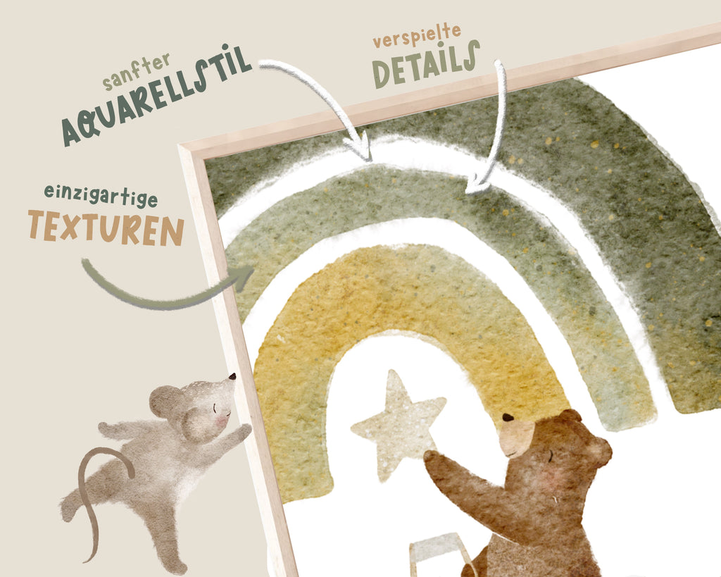 P.S. dieses Regenbogen-Motiv ist in ähnlichem Design auch mit zwei Füchsen im Shop zu finden. Gib´dafür einfach "Regenbogen" im Suchfeld ganz oben ein.