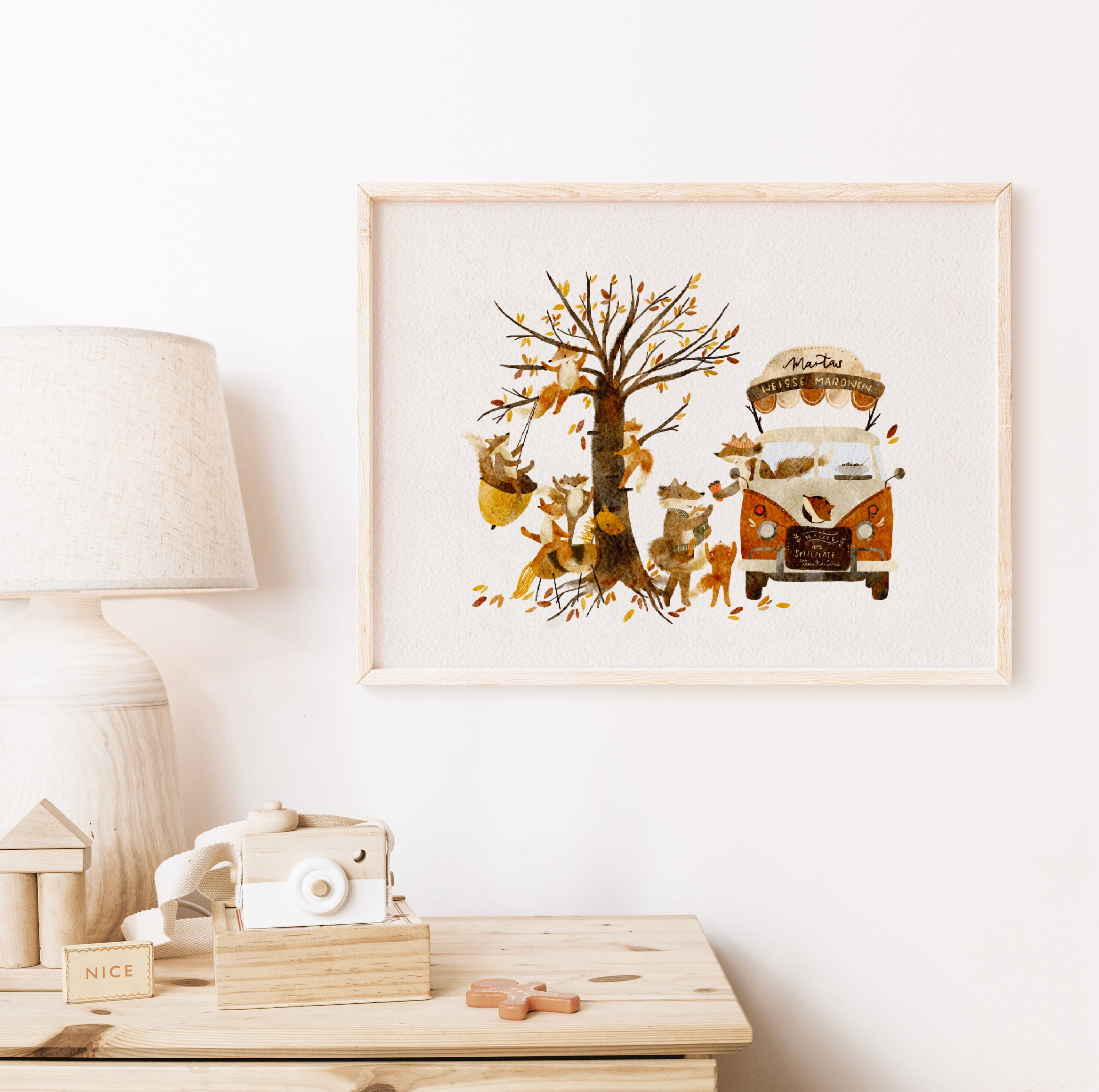Jedes Motiv ist meine eigene Idee – oft inspiriert von Spaziergängen mit meinen Kindern – und liebevoll von Hand illustriert. Kleine Waldtiere voller Charme erzählen Geschichten, berühren Herzen und schenken Freude.