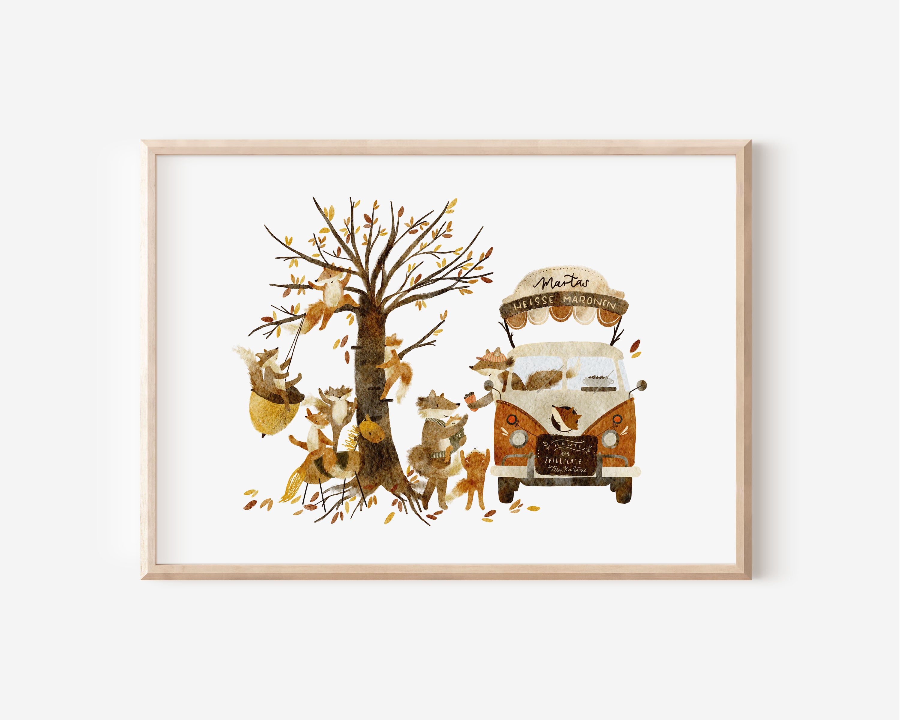 Marta und ihr Maronen Bus sind schon von weitem zu erschnuppern. Im Herbst ist sie mit ihrem Bus unterwegs und verteilt besonders gern an Spielplätzen ihre Leckereien an die kleinen Waldfreunde.