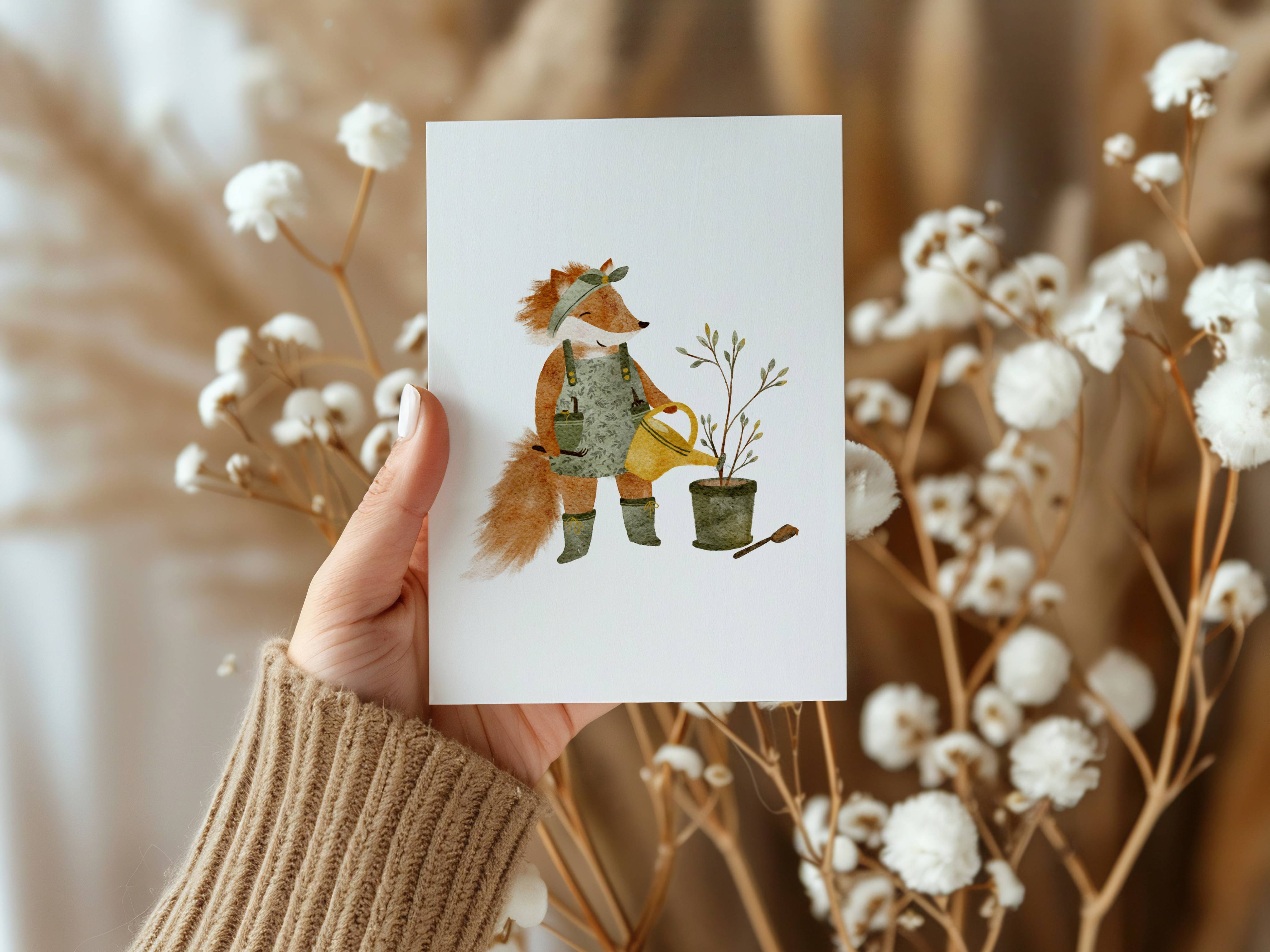 Jedes Motiv ist meine eigene Idee – oft inspiriert von Spaziergängen mit meinen Kindern – und liebevoll von Hand illustriert. Kleine Waldtiere voller Charme erzählen Geschichten, berühren Herzen und schenken Freude.