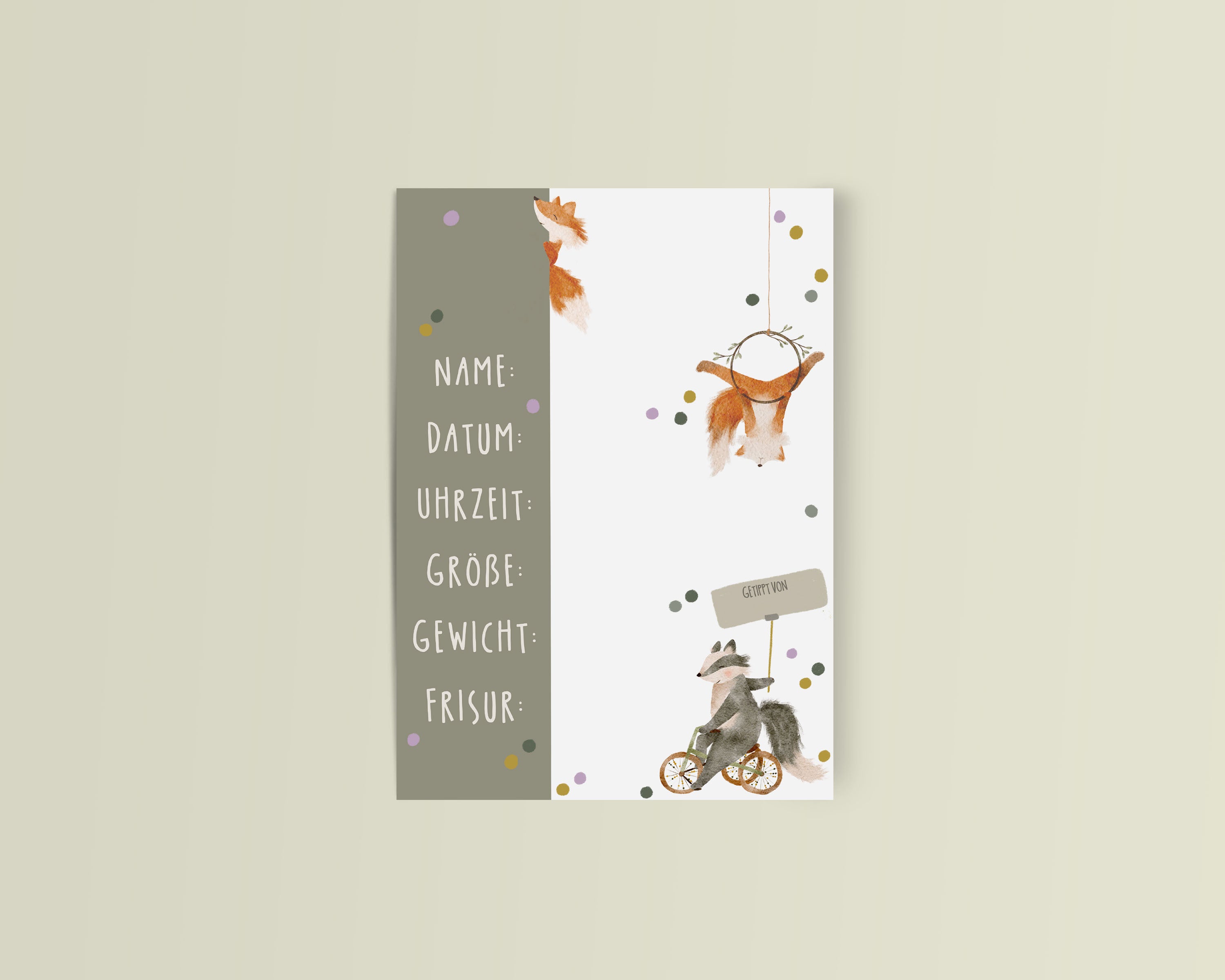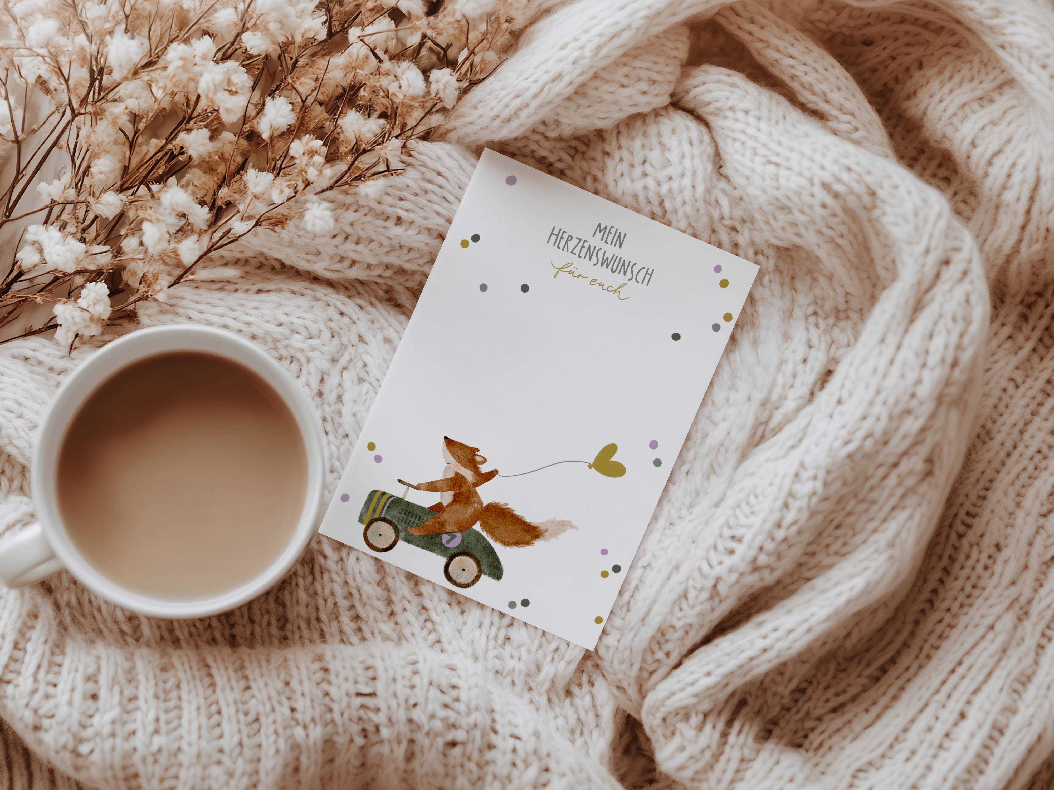 Jedes Motiv ist meine eigene Idee – oft inspiriert von Spaziergängen mit meinen Kindern – und liebevoll von Hand illustriert. Kleine Waldtiere voller Charme erzählen Geschichten, berühren Herzen und schenken Freude.